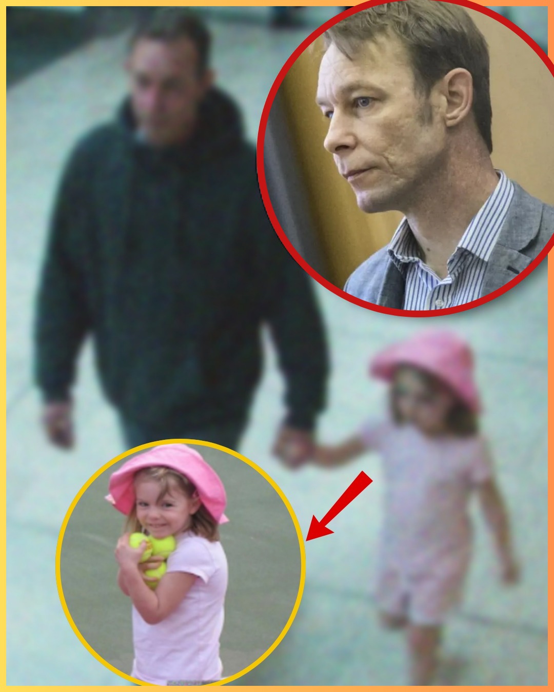 An inset zoom highlights his facial features. While the resolution is low, the man has short, receding hair and a facial structure that some online sleuths claim resembles Christian Brueckner, the convicted German prime suspect.