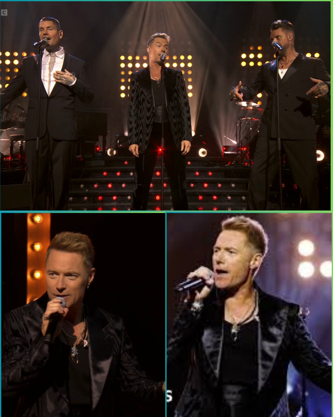 Shane Lynch and Keith Duffy joined Ronan on stage, with Mikey Graham missed by fans (Credit: BBC)