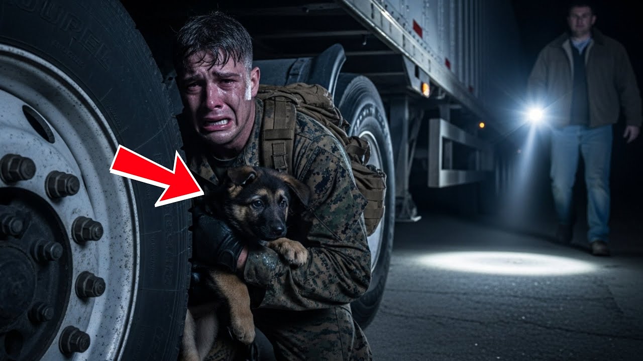 The standoff at the back of the trailer lasted only seconds, but it felt like a lifetime. The beam of Silas’s flashlight held the young man and the puppy in a circle of harsh white light. The soldier didn’t move, his body rigid, eyes wide and unblinking.