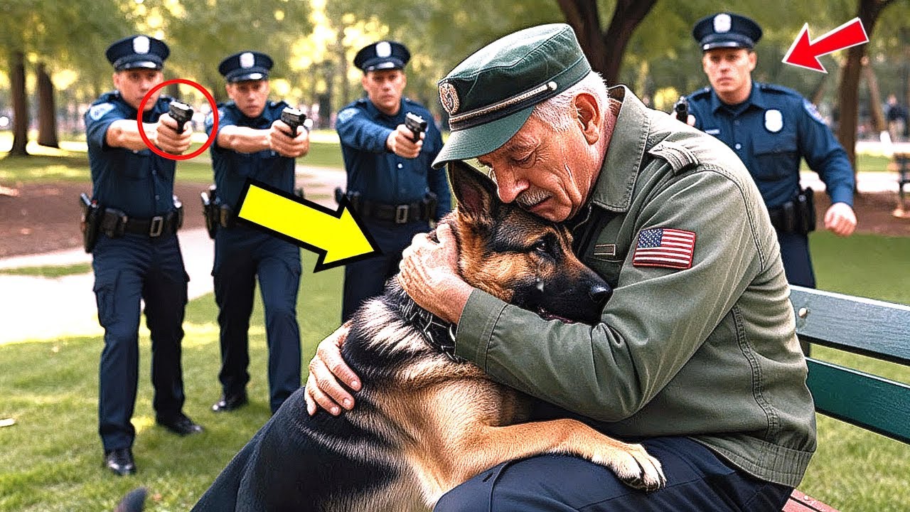 Children playing, leaves rustling, and sunlight dancing across the pond. Everything was peaceful until someone made a call that would change everything. Suspicious old man on a bench, the report said. Looks homeless. Has a dangerous dog with him. Minutes later, three patrol cars rolled in. Officers stepped out cautiously, hands resting on their holsters.