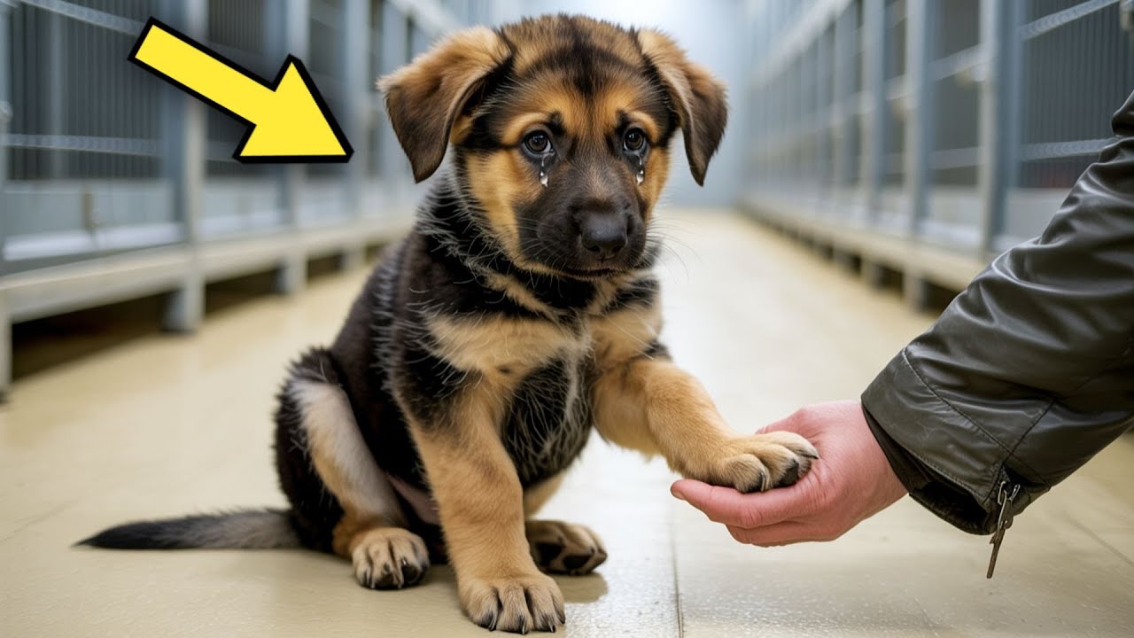 In a crowded animal shelter, hundreds of dogs barked and wagged their tails, hoping for a second chance. But in one corner, a tiny German Shepherd puppy sat silently, tears in his eyes, too broken to beg for love. People passed him by, calling him the saddest dog here. No one believed he’d ever be adopted until one man stopped, knelt down, and took his paw.