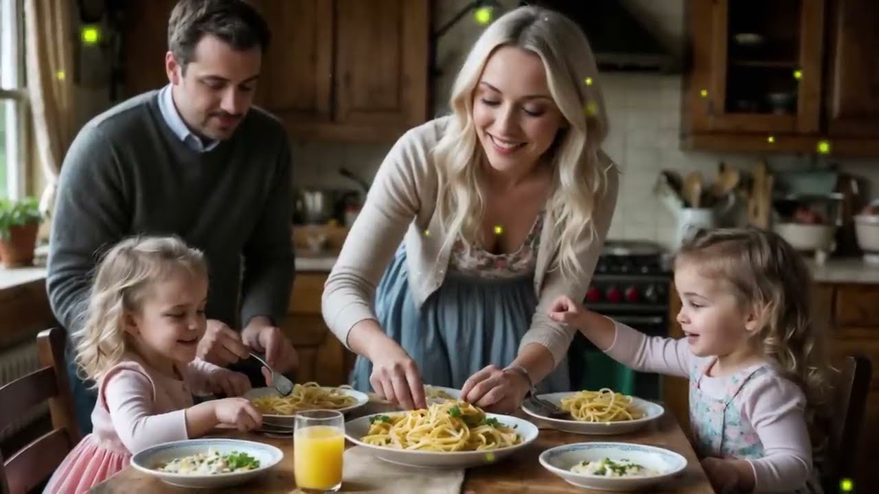Within minutes, the girls were giggling, pointing at her lopsided kitten drawing, completely enchanted. Graham sat back, stunned. The usual awkwardness of introducing someone new to his daughters was gone. This wasn’t forced. It was effortless. Dinner arrived in a flurry of chaos. Spaghetti sauce splattered onto the table, orange juice tipped, and napkins were sacrificed in the process. Sadi didn’t flinch.
