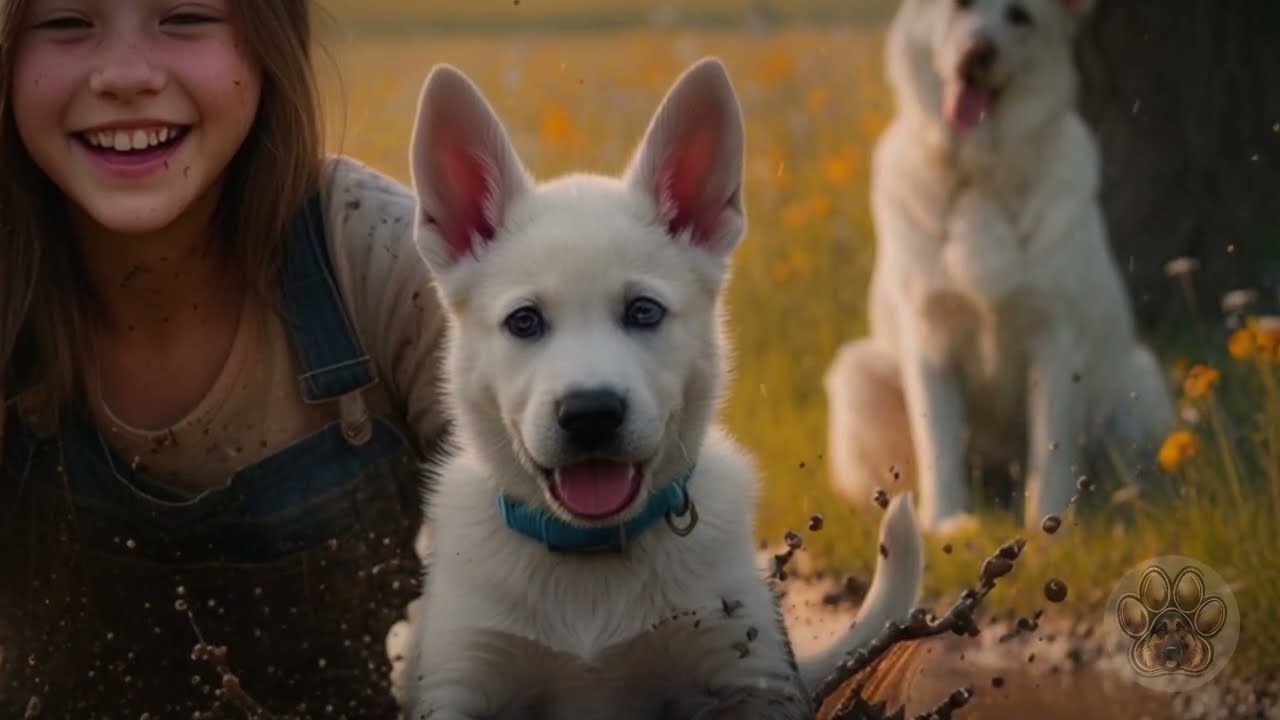 But that day, I was standing at the front window, coffee forgotten in my hand, watching Lily and Molly splash barefoot through puddles. Molly had discovered the joy of mud, and Lily, bless her, didn’t try to stop her. Instead, she danced with her, twirled in circles as the puppy bounded around her like a blur of white lightning, wet fur flying, tail a whip of happiness. Behind them, at a safe distance, Snowdrop stood beneath the overhang of the barn, out of the rain, but never out of sight.