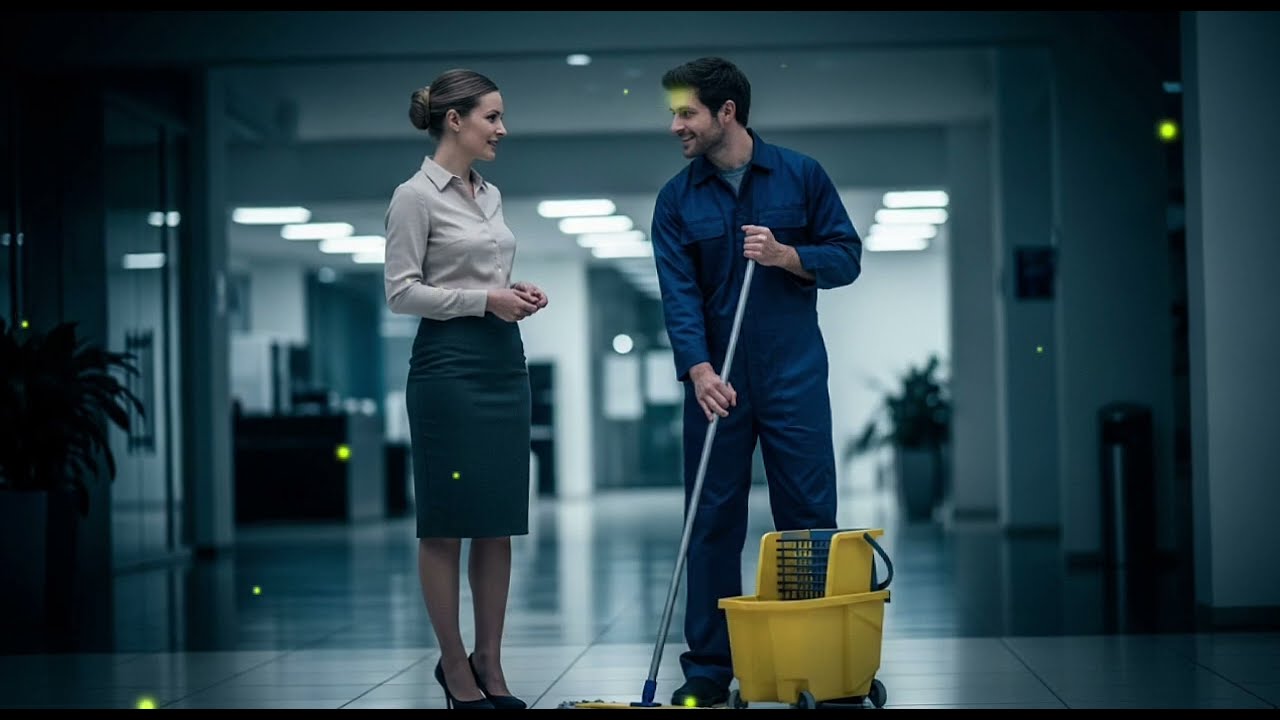 Camera opens in a shiny corporate office hallway. A janitor kneels, mopping the floor, when a woman in heels stops right in front of him. Her words silence the entire office. I don’t have a husband. Can I have a date with you? The janitor freezes. The CEO of the company, known for her icy demeanor and ruthless decisions, just said that to him.