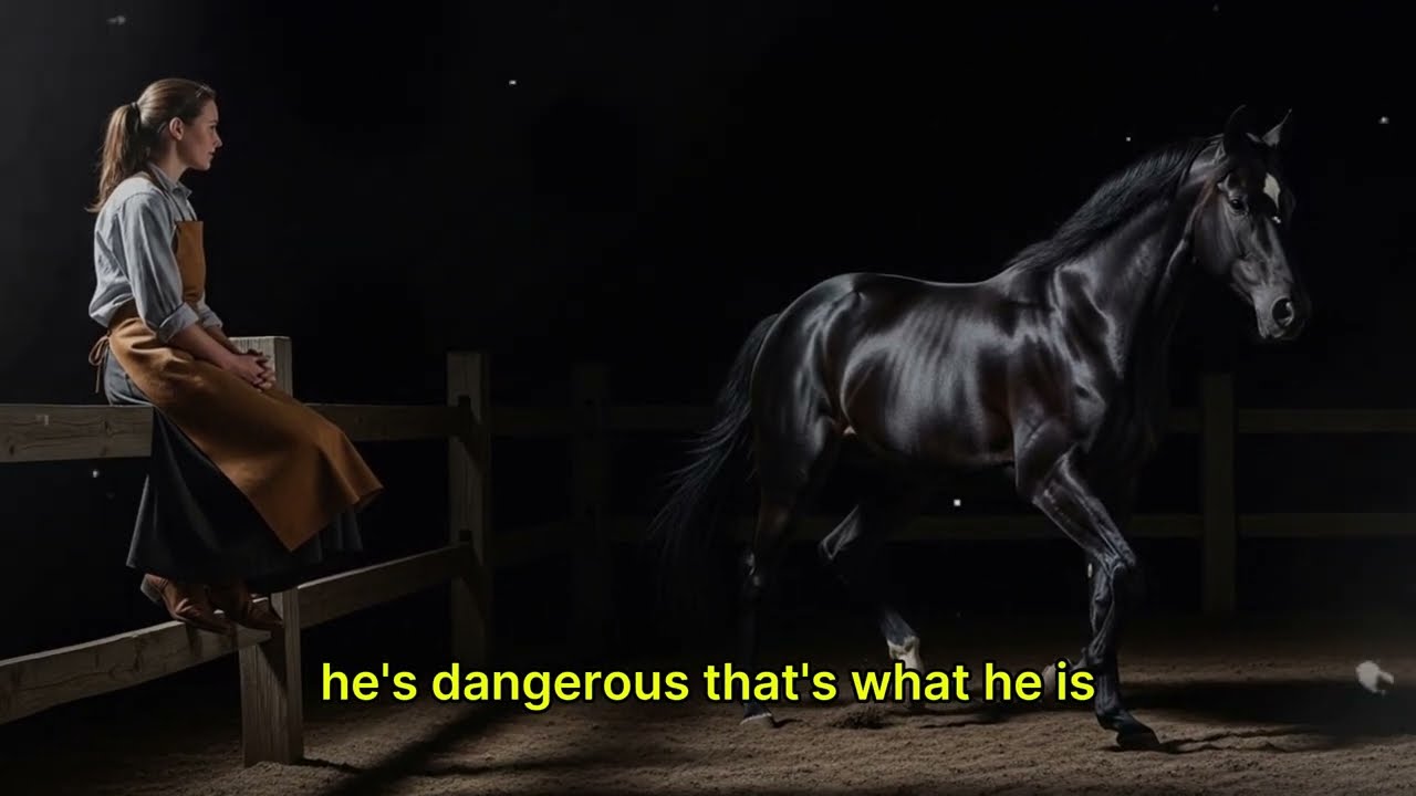From that night on, Sarah dedicated every spare minute to the black stallion. She didn’t use whips or ropes. She used words. She talked to him about everything: her late mother, the searing fear that crippled her, and the way her father’s stoic silence hurt far more than his words. The stallion would stand still, listening, tilting his great head. Over time, he began to respond. He followed her voice, allowed her touch on his neck, his flank, and his mane.