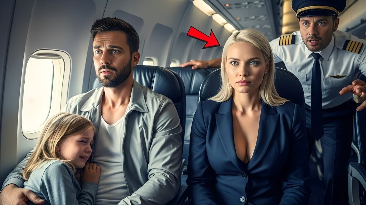 But in seat three, they sat someone who didn’t seem to belong there. a single father with a worn denim jacket holding his little daughter close. Her eyes were red from crying, her small hands clutching a stuffed bunny as if it were her lifeline. Next to them, a well-dressed woman in a navy suit shifted uncomfortably, shooting them sharp glances.