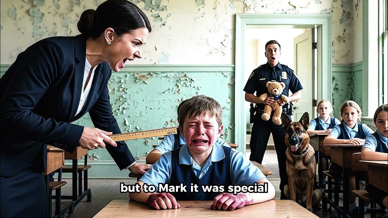 Instinct took over. Mark threw open the door to class 4C and froze. The image before him was a punch to the gut that transcended his duties as a police officer and struck at the very core of his being as a father. In the middle of the room, nine-year-old Ethan sat slumped at his wooden desk, tears streaming down his face. His small, exposed hands were red, swollen, and trembling—the unmistakable sign of having been struck repeatedly. Standing over him, her face contorted with cold fury, was Ms. Carter, his teacher. In her raised hand, she held a wooden ruler, poised to strike again.