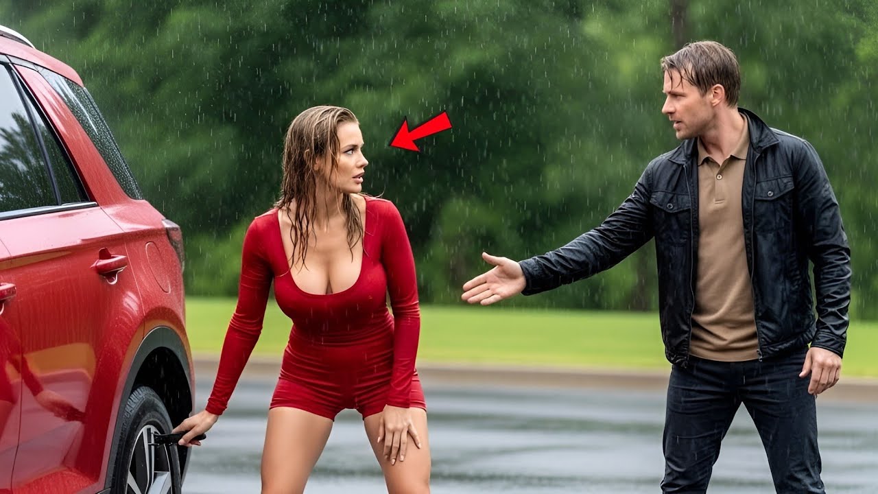 A flat tire hissing out its last breath beneath the downpour. Victoria’s side, pushing back her wet hair. The forest road stretched empty for miles. No signal, no help in sight. She opened the trunk, found the spare, and knelt to change it. But the bolts wouldn’t move. Her designer heels slipped in the mud. Her hands trembled with cold, and frustration burned behind her tired eyes.